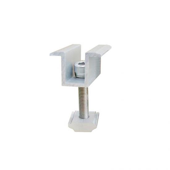 Las abrazaderas de paneles solares grandes están hechas de aleación de aluminio de extrusión de fuerza 6005-T5 , que se puede utilizar para la instalación del panel solar con el grosor 25 ~ 50mm de módulos solares.
